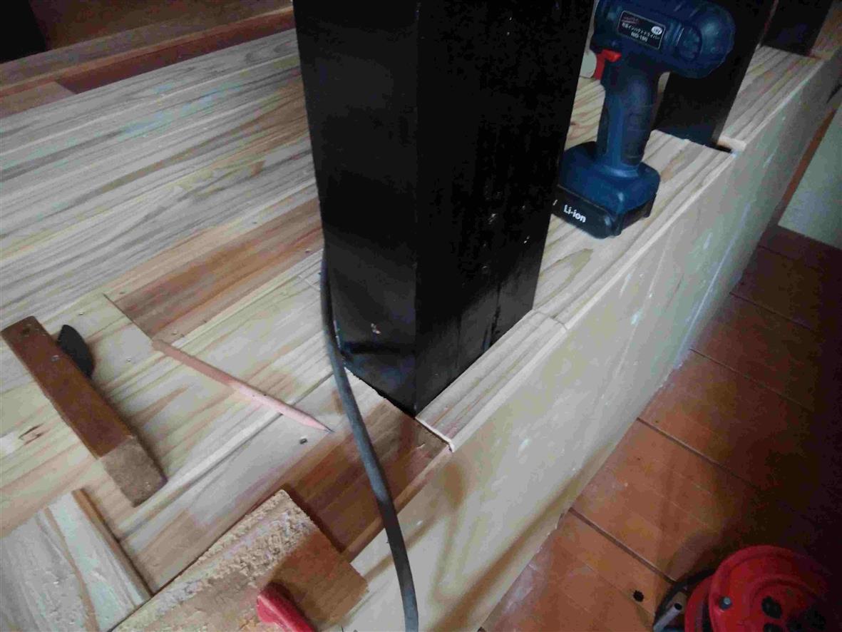 柱を避けて張ってますので 切り欠いた状態。