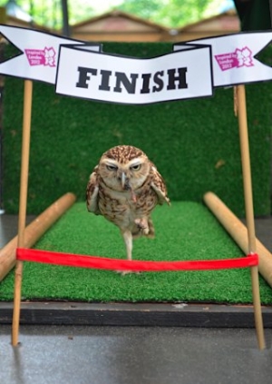 昨日とは打って変わって不安定な天気に。午後から降水確率90%らしい。家周辺でガンガン工事してて暑さと天気の不安定さで大変そうだ。さっきヤホーニュースで気になる話題を見つけました。ロンドンオリンピックが近づいているためロンドン動物園のふくろう・ボブが(やっぱ海外の動物は名前も当然ながら外国名なんだな…)自己最高記録を破るべく、独特の走法で日々、100センチの短距離走に挑んでいるらしい。(7月20日 時事通信より)ボブの身長は15センチらしい。何か、いかにもなオリンピック風潮に借り出されてかわいそうな感じもしなくはないがボブもちゃっかり自分アピールできるのがカワイイ。ええ顔して走ってるし。頑張れ!ボブ!