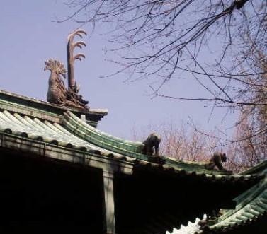 湯島聖堂の魔よけです。シャチホコと鬼龍子という犬のような動物です。 小さくてわかりづらいでしょうが、この鬼龍子、ハイエナのように猫背で、ひどく凄みを利かせています。