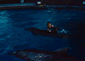 昔、とある水族館でイルカと泳いだときの写真です。イルカはこちらの希望を察知するとやしく近づき、こちらが疲れると、スーと失速して、私の体を気づかいながら離れていきました。なんとも優しい動物でした。