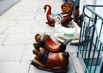 デンマーク、コペンハーゲンで見つけた、子供用のロッキングチェアーです。ムクの木を削りだし、着色しています。とても重いので、ちょとやそっとでは倒れません。小さい子供の夢を乗せる揺れる椅子です。
