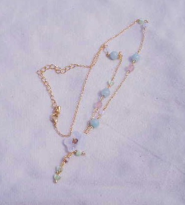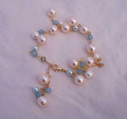 祥子さんの最後の作品です。淡水パールとガラスビーズの春っぽいブレスレットです。