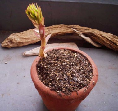 実はこれ、百合の芽です。ブログで知りったある方から購入して、ユーパックを一月ほどほったらかしたら、ダンボールの中でもやしのように成長していました。あわてて植木鉢に移しました。他に2株あり、みんなこのような感じです。緑になって、白い花をつけるか、がんばって育てます。