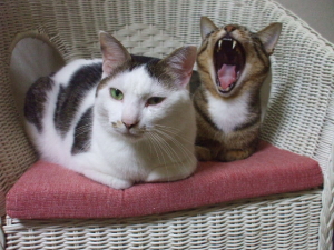 ねこさんもあくびがうつるみたいなんです。前回のつづき、しゅうくんのあくびのあとにおじさんっぽいあくびをするだいくん。そのあと、私もあくびをしました。先日、中華街でゲットしました。せいろ。そして、カスタードまん、こちらのお店のは黄色くておいしいです。気候の変化もはげしいですがみなさんもお体にきをつけて。