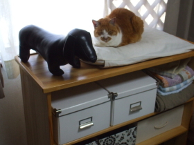 むぎこちゃん、ちんまり窓辺でねています。あいかわらず、おはながつまっているのか、スーピースーピー鼻息がきこえます。収納は最近すこしかえて、白い箱は帯入れになっています。きものは収納が大変だ~。収納といえば、こちらはフード収納。みないっしょのフードではないので、いろいろなケースにはいってます。準備をすると、犬はこおどりをはじめ猫たちは、ふらふらと徘徊しながら、なあなあと大合唱がはじまるのでテバヤクくばらなければなりませんから、トレイもいい位置においてあります。