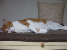 本格的にあつくなってきて扇風機も出しました。皆さんは暑さ対策はどうされていますか?久しぶりに晴れて洗濯ものもよくかわいたので、ベッドカバーやまくらカバーソファーカバーを麻など白色のものに模様替えしました。白を多くすると、すずしげな感じがしますカバーをかえるときいつも邪魔しに来るまえがみがキュートな子・・・・----------------------あいかわらず、カブくんは、非常に規則正しい動きをしています。朝食後、トイレ、それから、このように、PCの裏にはさまっていて、ごろごろ5時くらいになると、ふわ~っといいながらのそのそでてきて、ご飯をまつために、かごの中や、棚の上でくつろいでいます。外にも、他の猫にも関心がないみたいで・・・。この子がけんか傷もなく、なんの病気にもなっていないのは、こうした生活習慣にあるのかもしれません。神奈川より・・・・・ミオちゃん里親さん募集中カブくん里親さん募集中ランキングは・・・・現在23位だそうです。ありがとうございます!こちらのリンクを、クリックしてネにほんブログ村