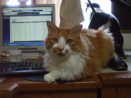 昨日、すがすがしいお天気で、窓から風が入る中、急に「in the middle of the night~♪」と音楽が流れ出し、おどろきましたが・・・・チャオくんが、マウスを押したようです。たしか、 the lion sleeps in the jungle とかそういう歌詞だったかと、題名がわからないですが・・・・それで、音楽がおわったらなあ~とないて、そのままどこかにいってしまいました。チャオくん、つい最近、かみをカットしたんですよ、ライオンみたいにカットしてあげればよいですかね。