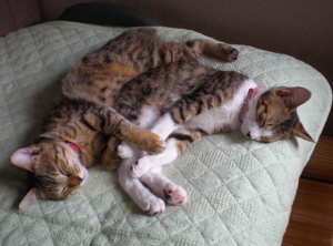 こんばんは、お仕事で、あしがくたくたで、通勤ラッシュでかえってきてから、すぐに、また地域猫のお世話があって・・・・足がむくんで、くたくたな今日このごろ・・・しかし!こんなかわいらしい以前いただいた、ソツギョウした猫たちの写真で元気になれます。みんな、二匹でもらわれた子たちですヨ。この子たちは、兄弟ではないのですが・・・。は~とそして、我が家に保護されてきた、みおちゃんとカブくんも。。。無抵抗のカブくんを好きなようにしているミオちゃん。ミオちゃんの方が年下なのにね。フフ、笑わせてくれますね~神奈川より・・・・・ミオちゃん里親さん募集中カブくん里親さん募集中ランキング参加中現在635中の53位くらいだそうです50位いないになるよう、こちらのリンクを、ぽちっとしてネにほんブログ村