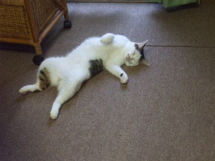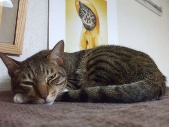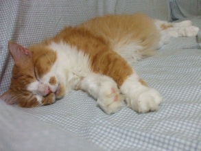 こんばんは、今日は日中暑くて室内も30度を越えました。この時期窓のしめ忘れ、網戸での外出は要注意です。室内飼いの場合、この時期、脱走して不幸にも命を失った猫がたくさんいるんです。気をつけましょうね写真は以前のつづき、ぐうぐう寝てるカメラに気づいて「なんだよ うるせえなあ」だいくんが写真のチャオくんを毛嫌いしています。この間、トイレで用をたしているチャオくんに威嚇けんか鳴きをしてひっぱたいていました。チャオくんは、びびって、トイレでウン●の上に尻もちして、たすけてくれとないていますそれで後でお尻をふいてあげるのが大変でした~。チャオ君はいつも「大」をしても砂をかけない、したらしっぱなし・・・。だいくんは、犬がペットシートに大をしても、そのシートをひっかいて上にかぶせてあげるようなすこし几帳面な性格なんです。だいくんにしてみたら、「公共のトイレはきれいにつかえよ!」という意味の怒りなのでしょうか猫社会もいろいろたいへん、それから、トイレは猫の数だけある方が理想的だそうです神奈川より・・・・・カブくん里親さん募集中そして、ランキングにほんブログ村