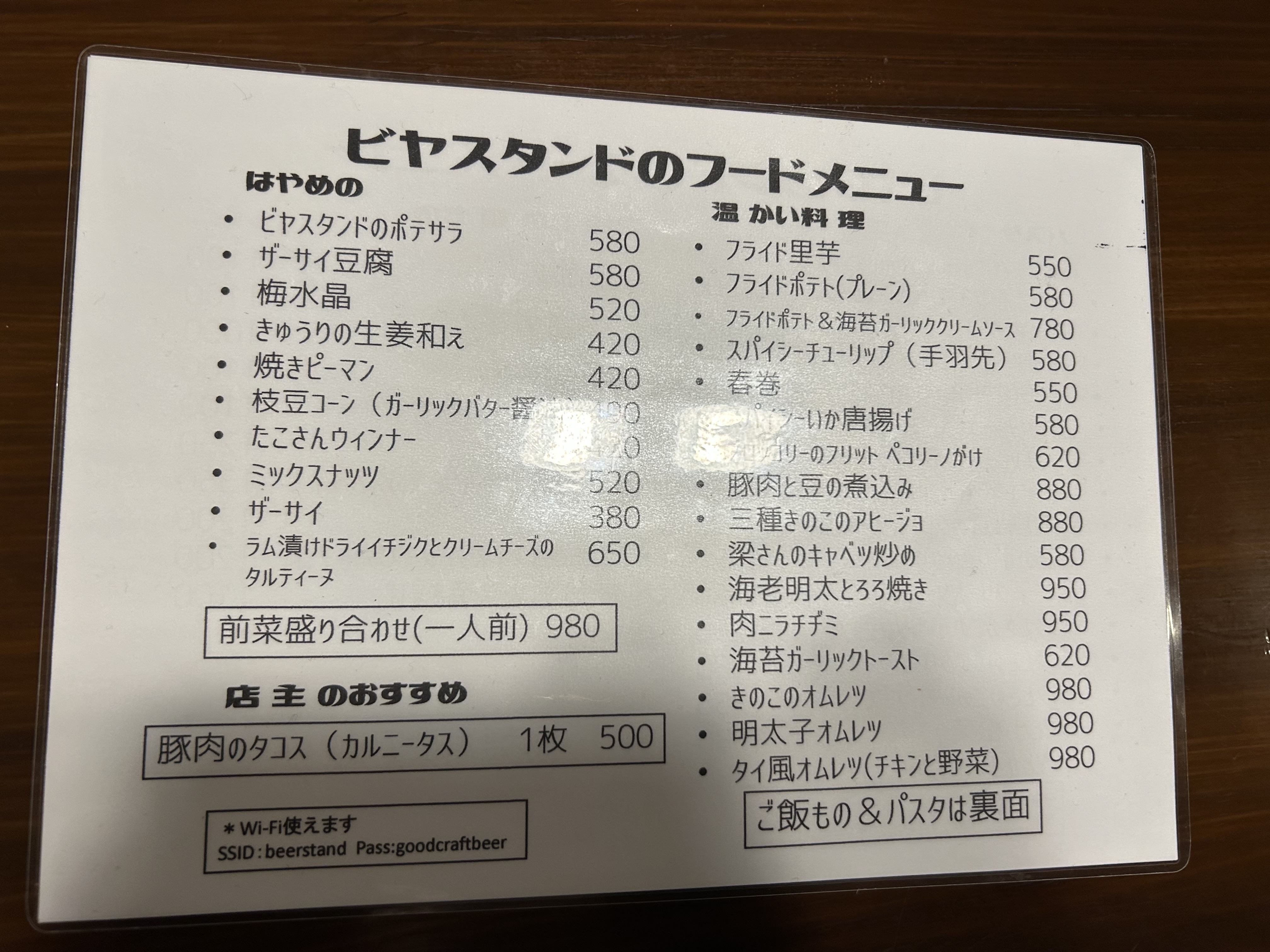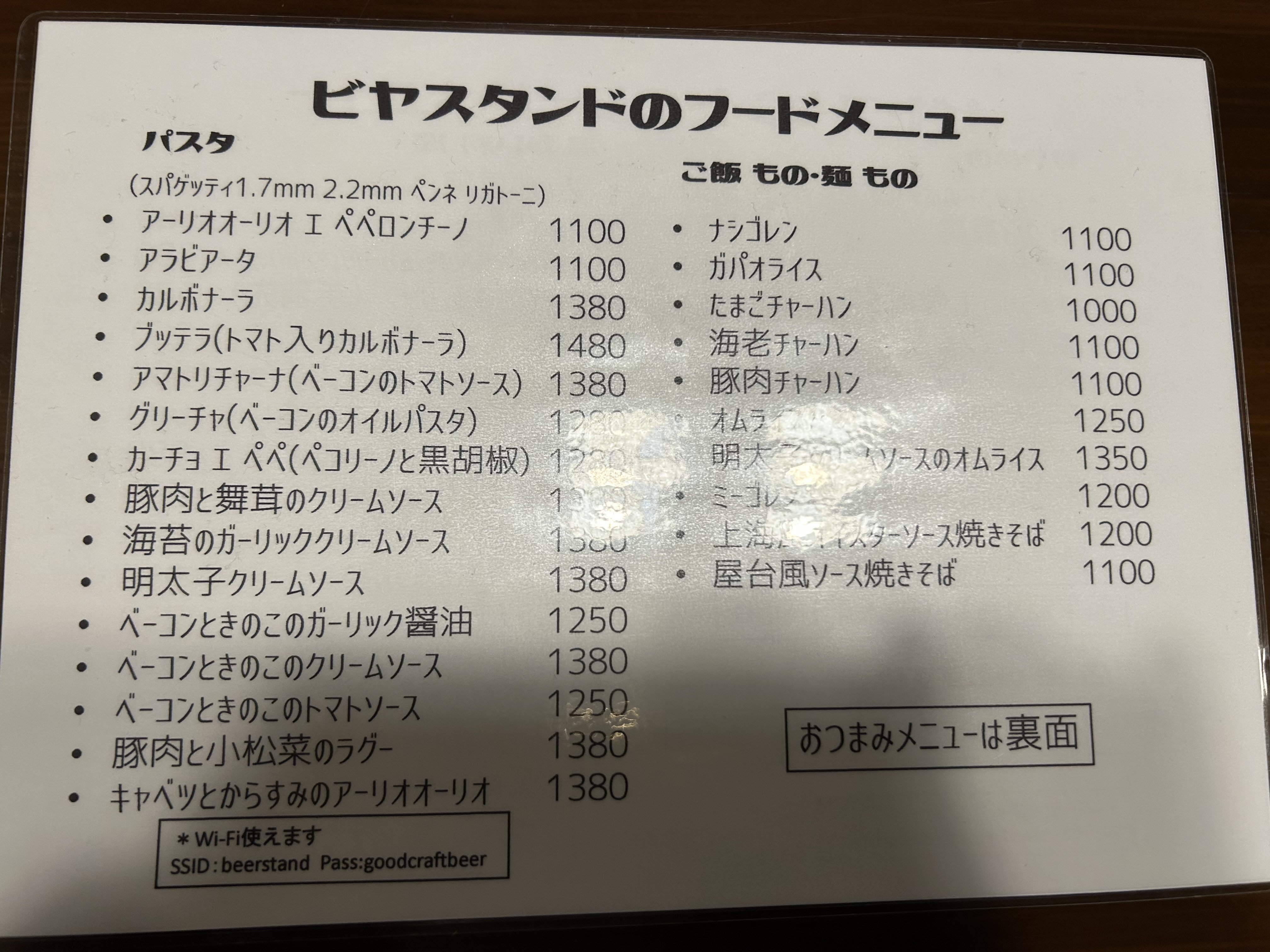 フードメニュー。