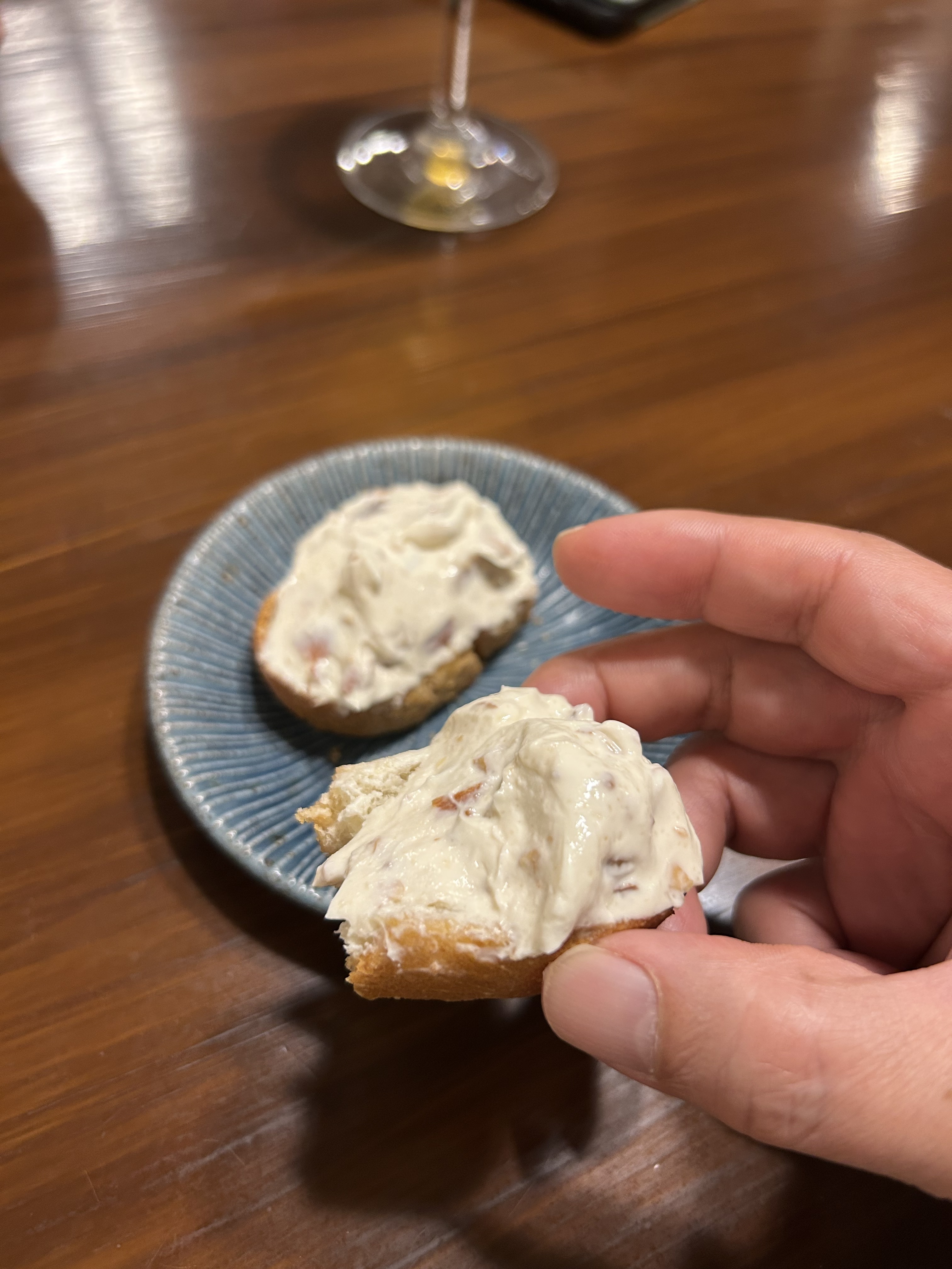 つまみはラム漬けドライイチヂクとクリームチーズのタルティーヌ。