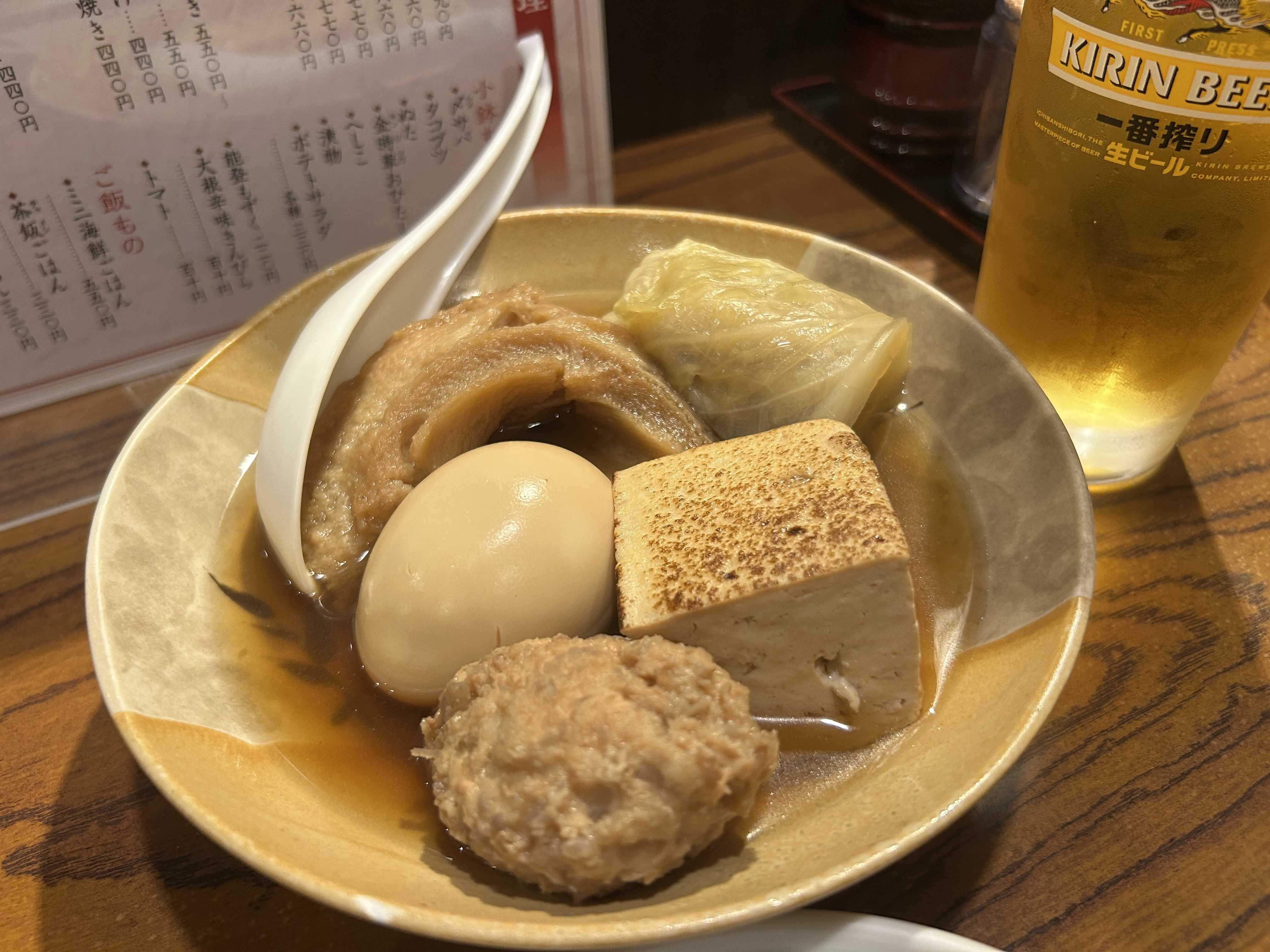 車麩、ロールキャベツ、玉子、焼き豆腐、蓮根だんご。