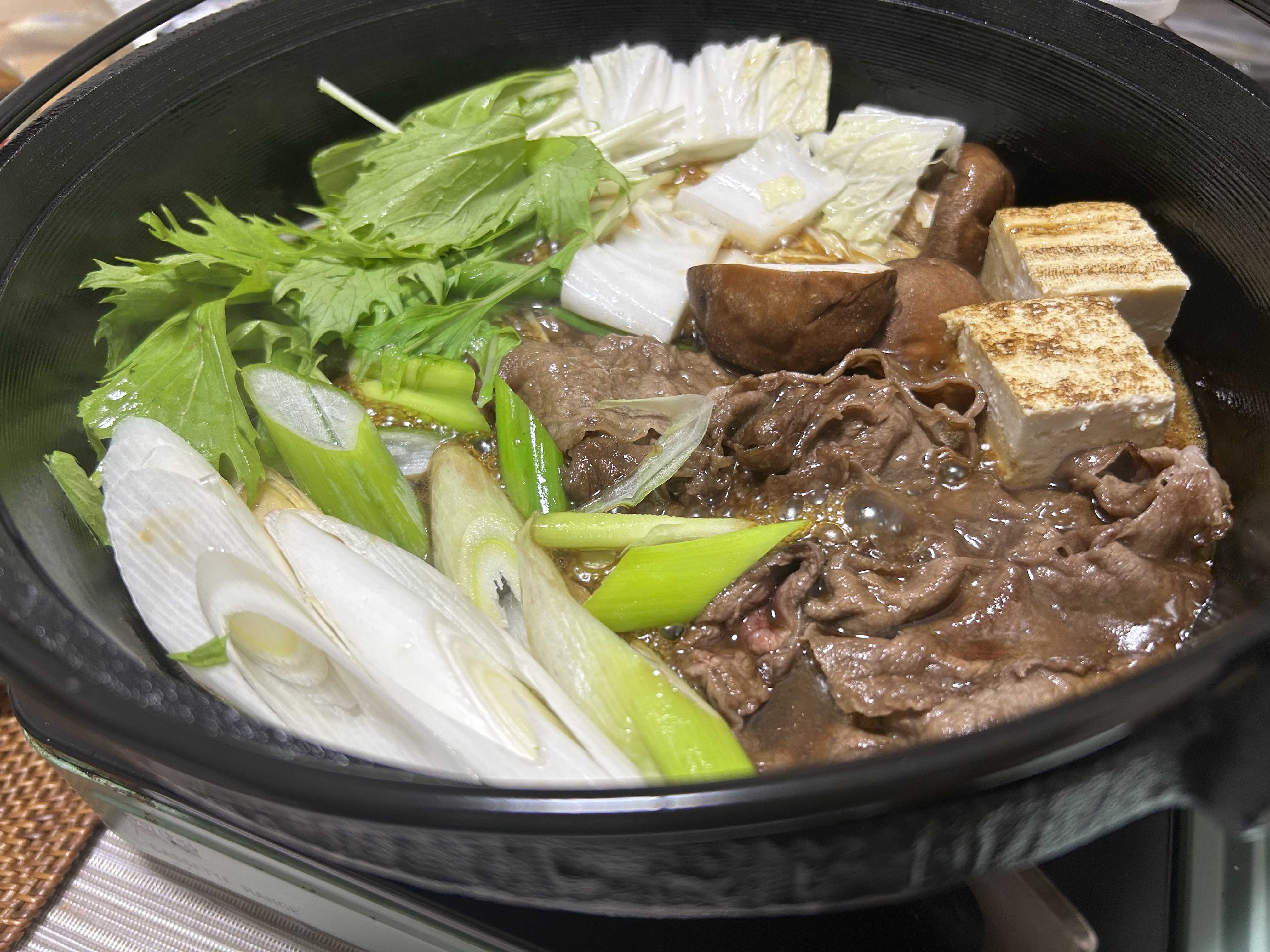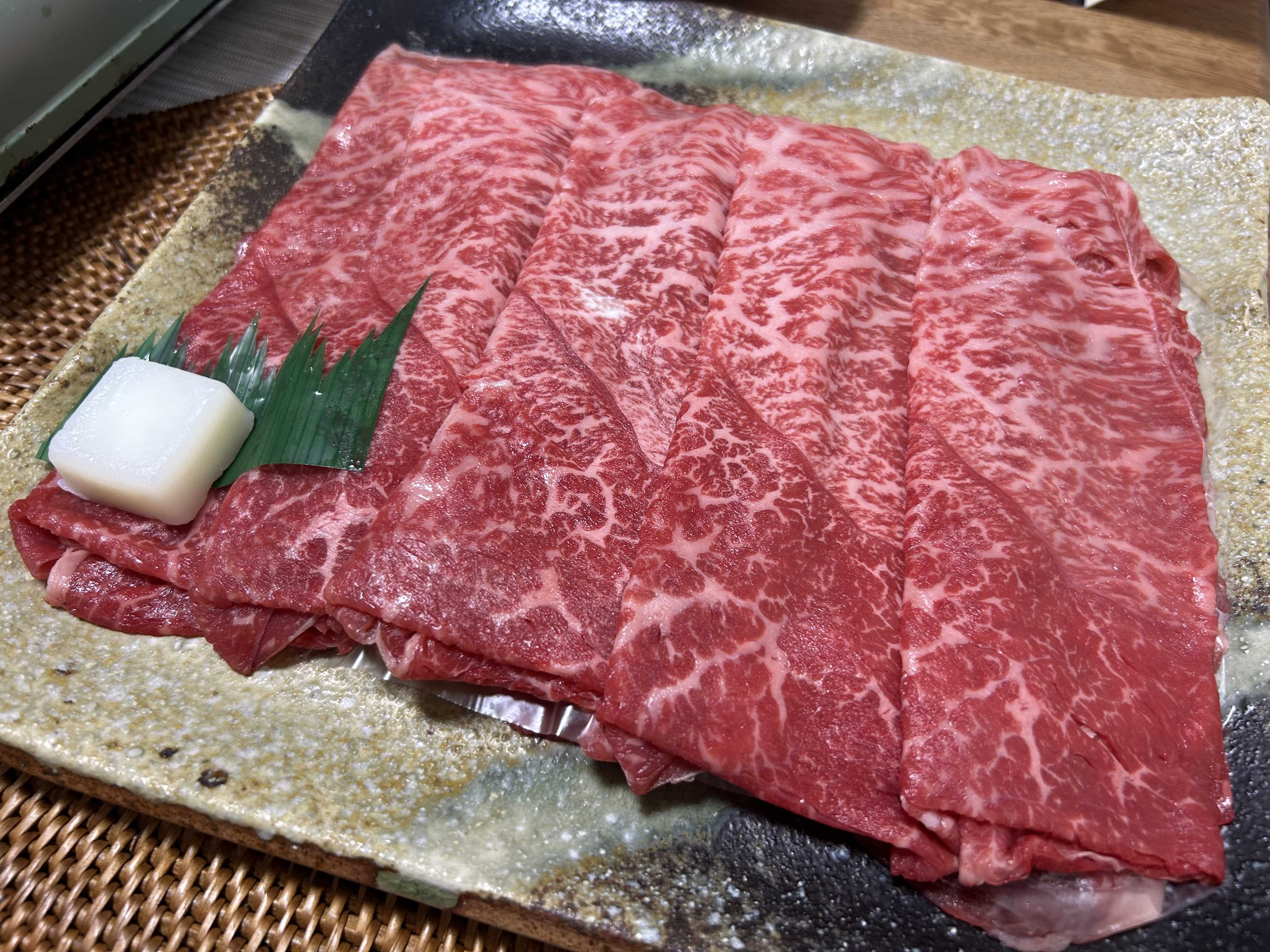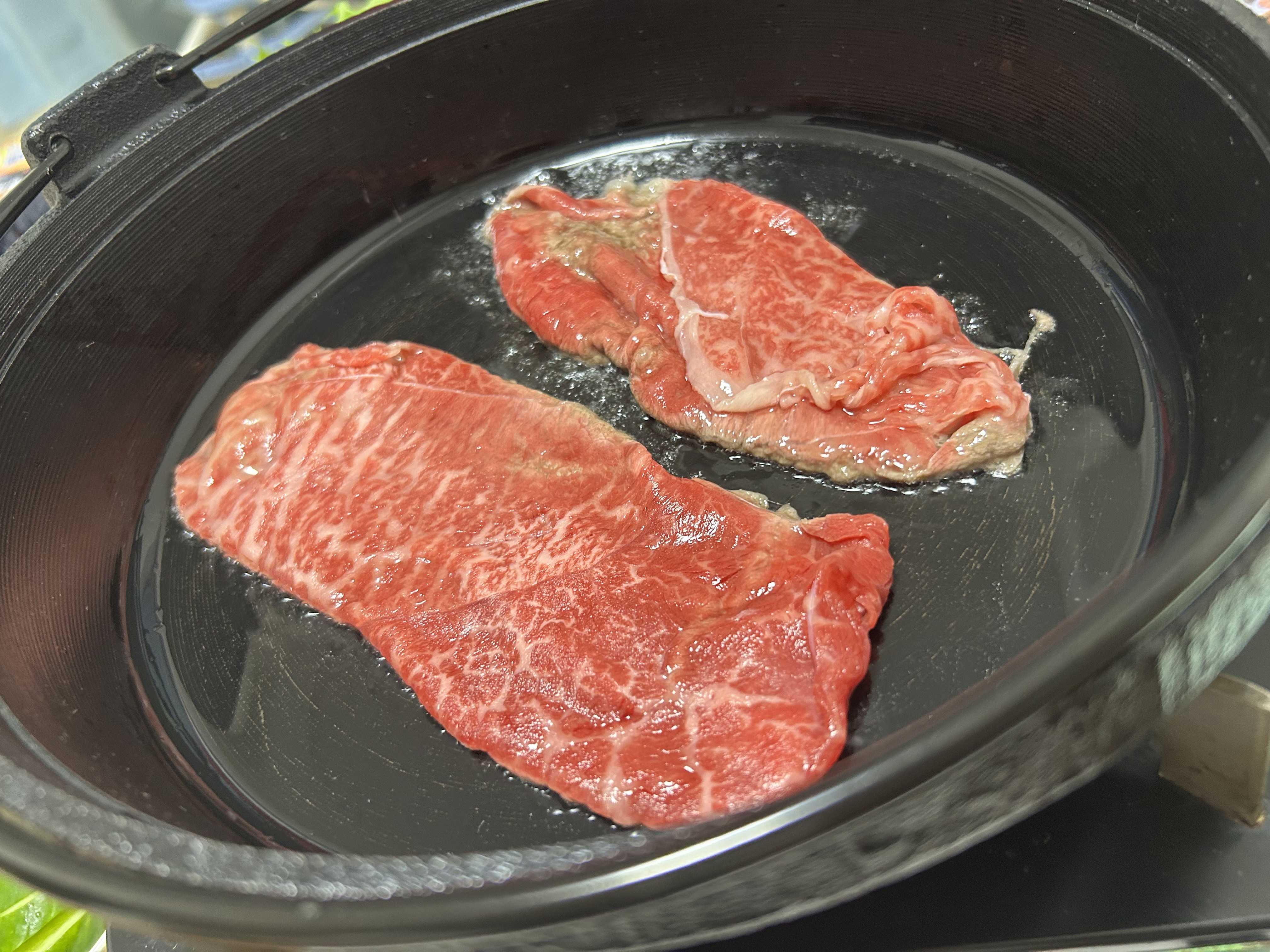 福島牛。綺麗なサシが入っている薄切りの肉。すき焼きで。脂、それほど強くなくて好きな肉だ。1パック残っているから、次はしゃぶしゃぶだな。