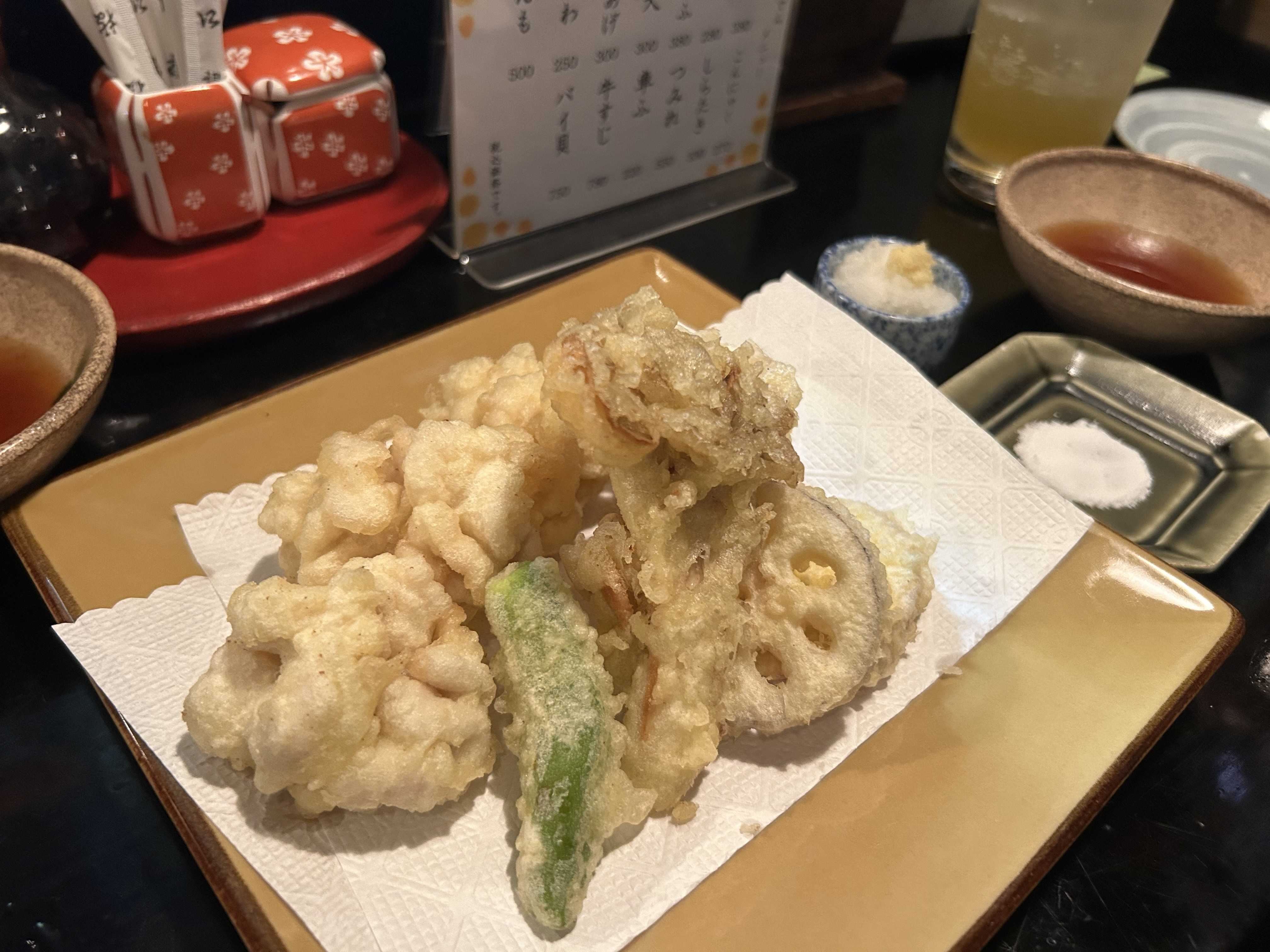 ししとうとレンコンの天ぷらも添えられる。