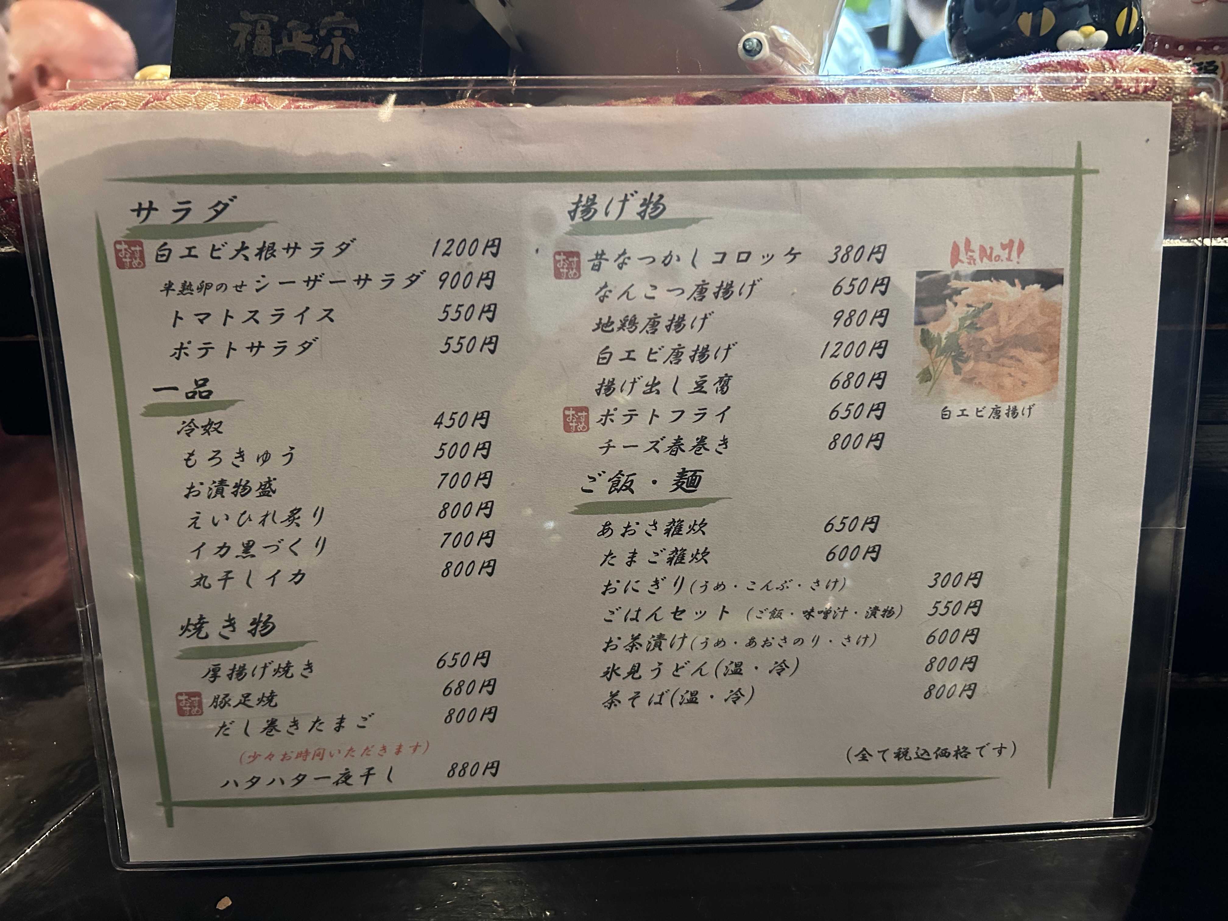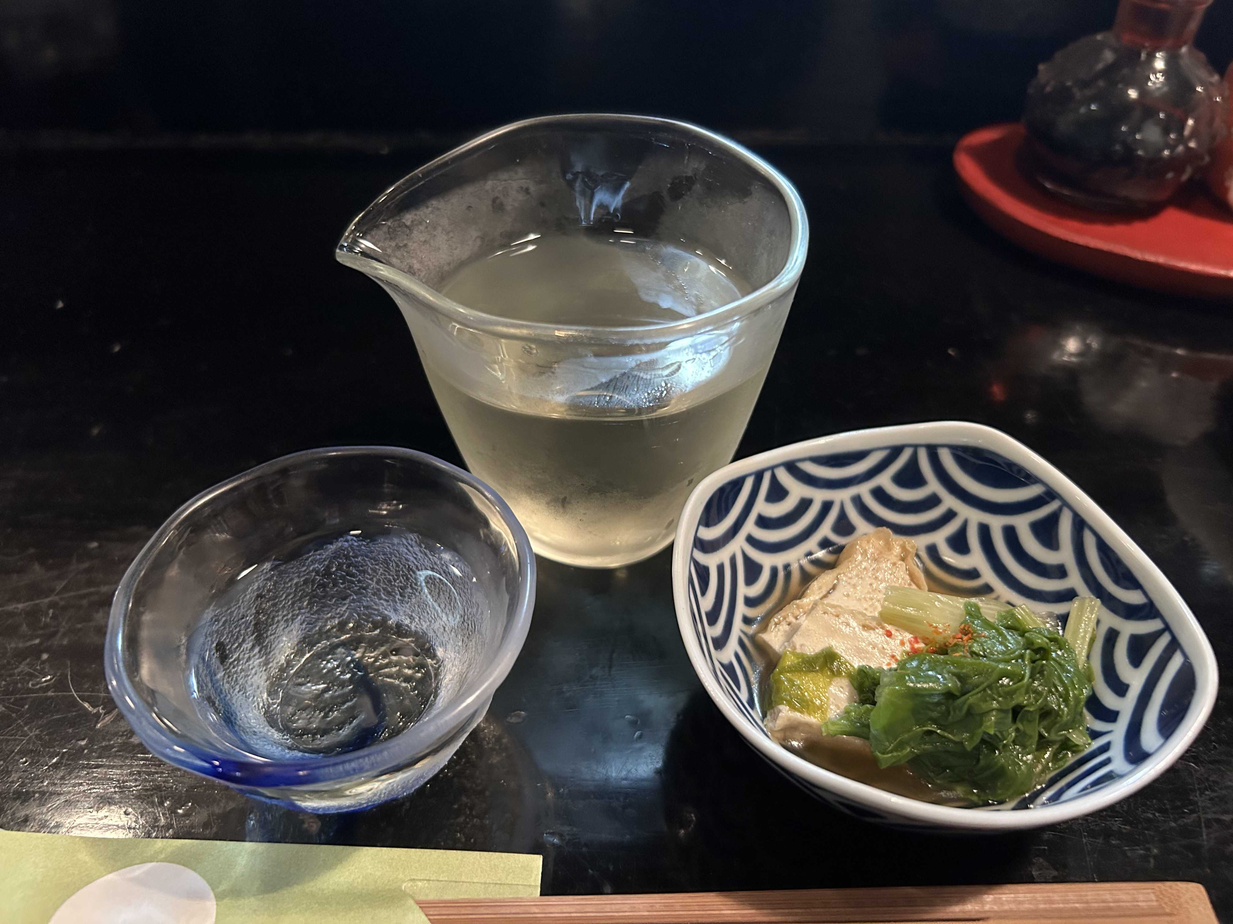 お通しは油揚げと青菜の煮物。