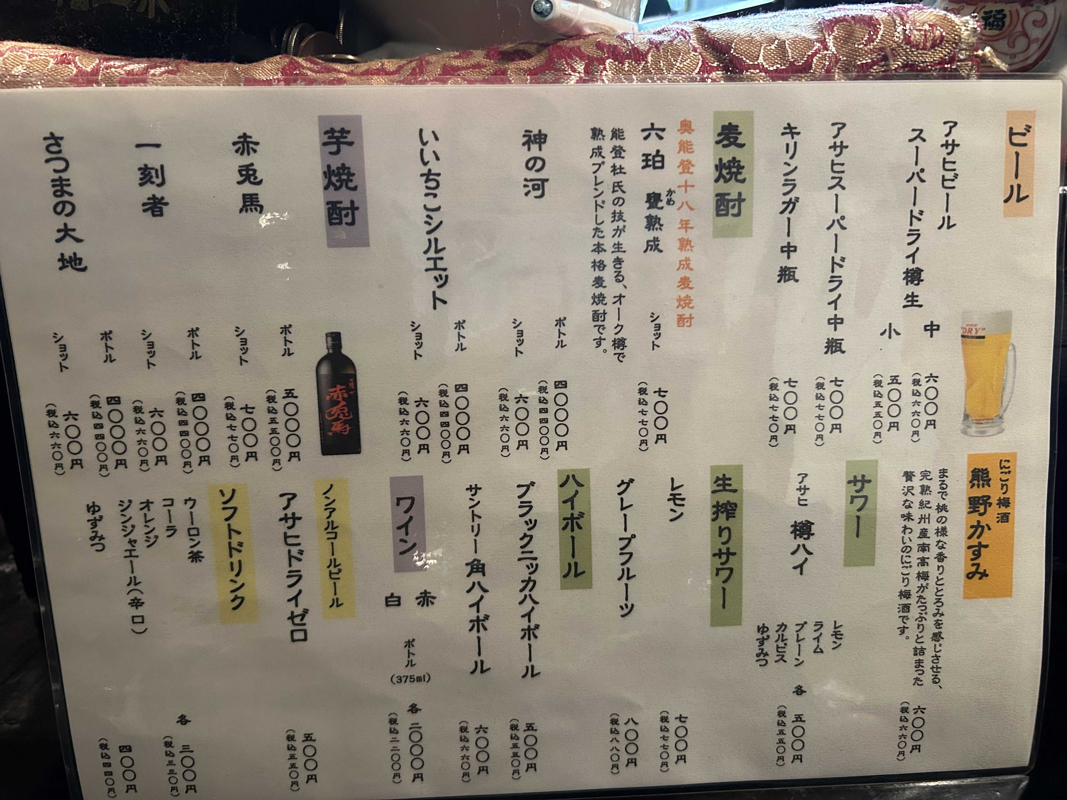 ドリンクメニュー。