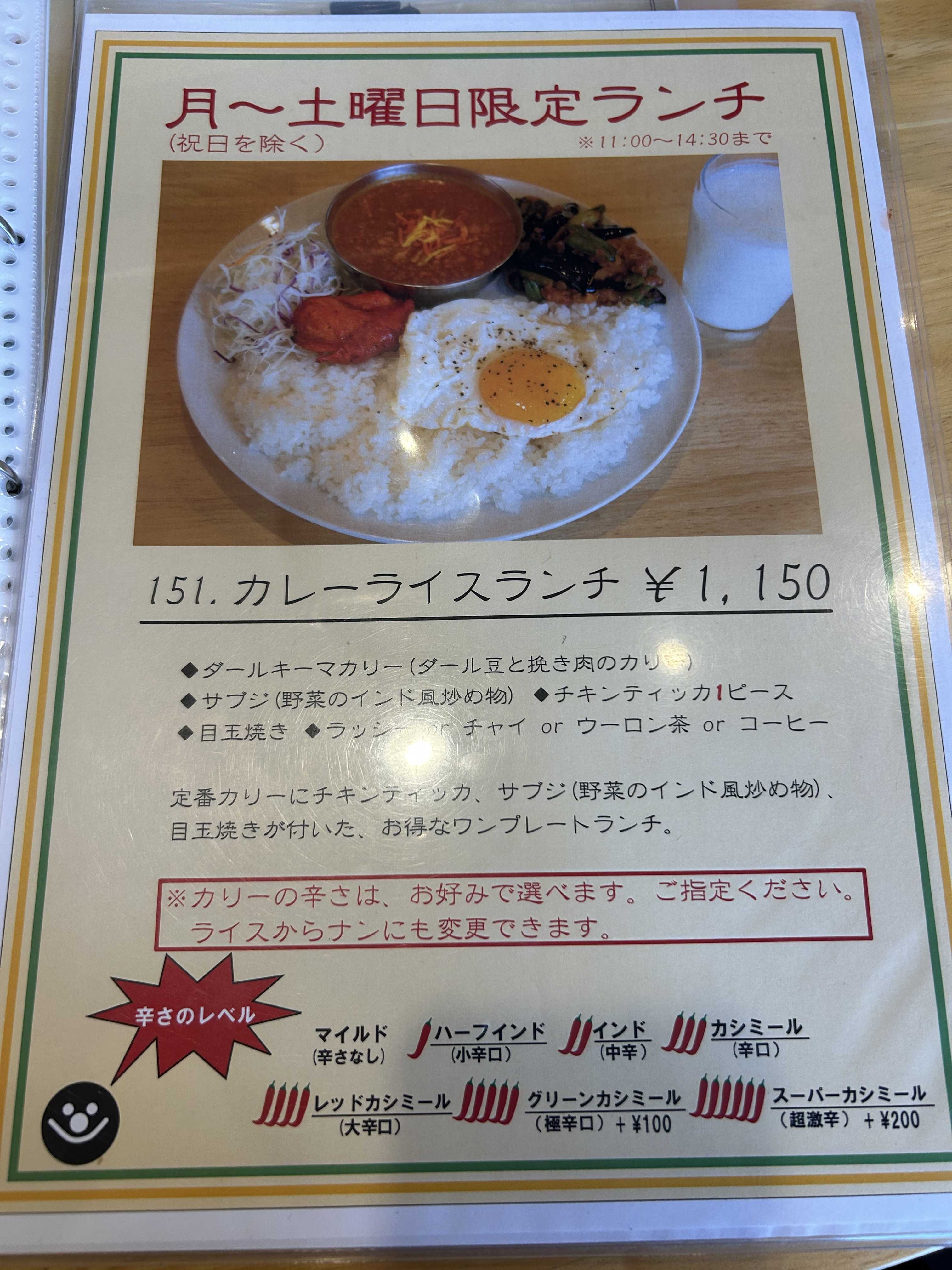 日替わりのカレーは曜日で決まっている。