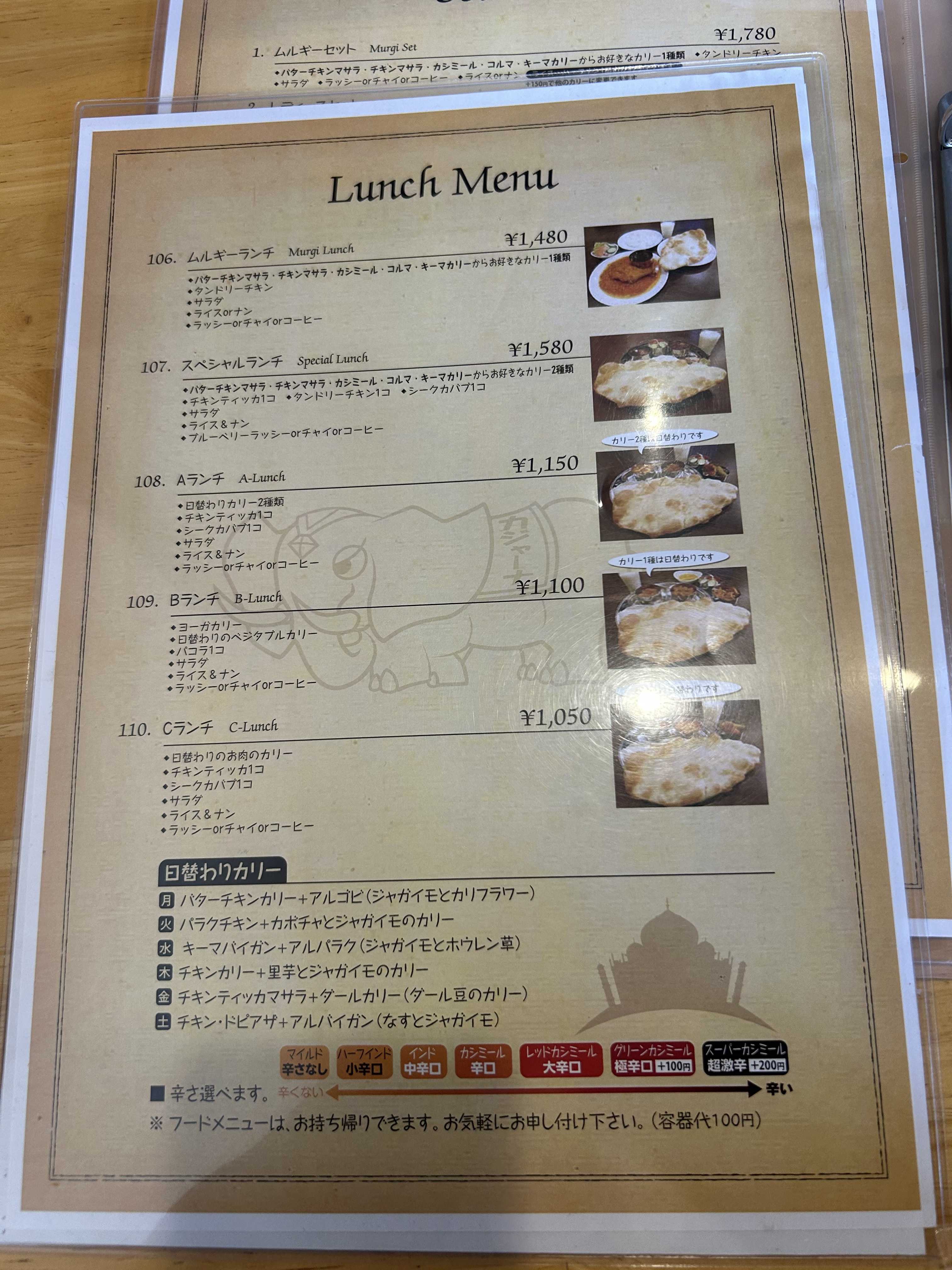 ランチメニュー。