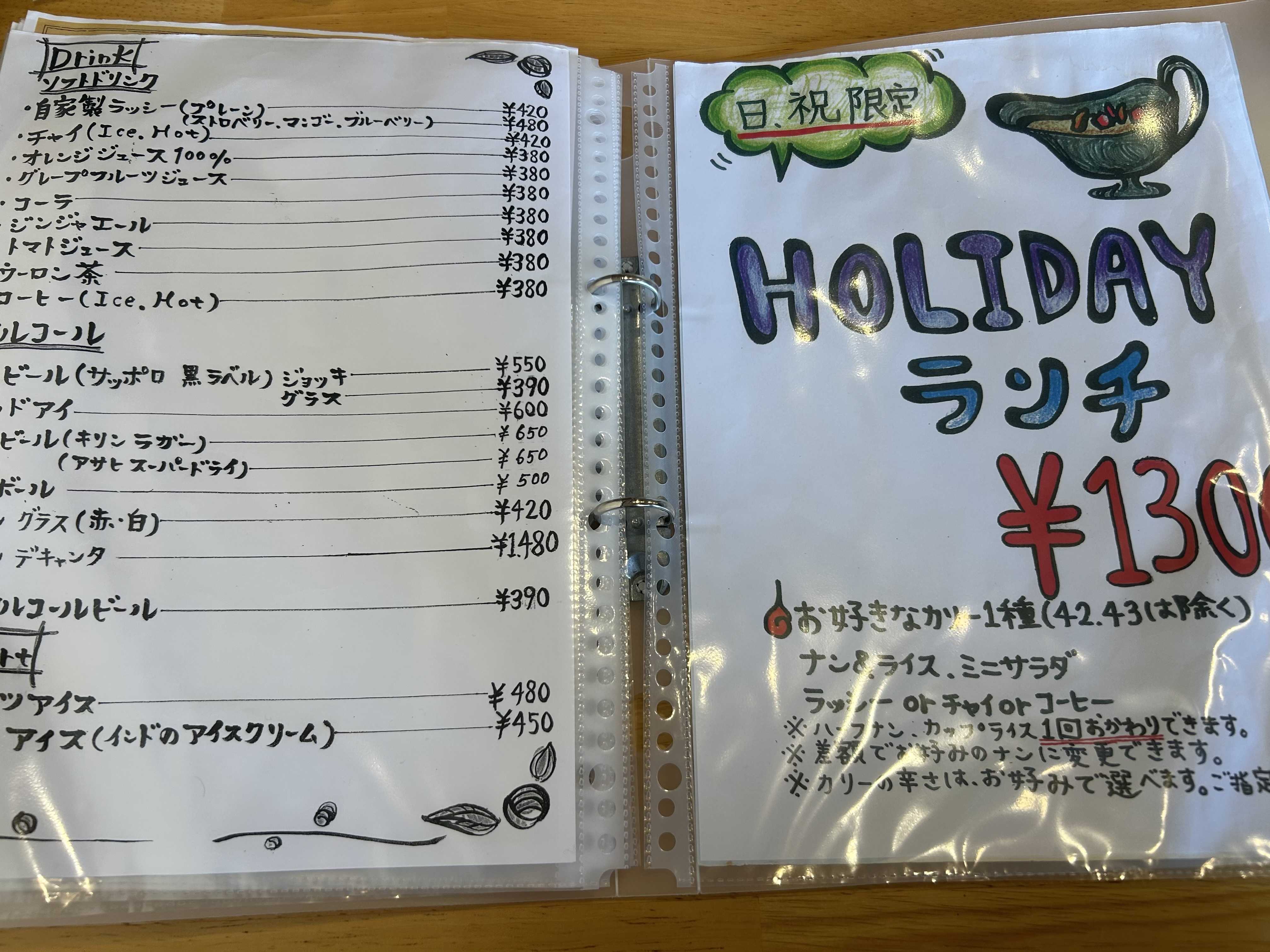 ドリンクメニュー。