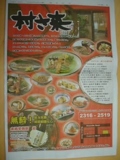 今朝届いた新聞を開くと、居酒屋「村さ来」の1面広告がドーンと掲載されてました。現在の香港は、日本の有名居酒屋チェーンである「和民」や「笑笑」が展開している他、日本風でないちゃんとした居酒屋も数多く存在しているので、日本人サラリーマンが仕事の憂さを晴らす店には事欠きません。また、いずれの店も結構繁盛しています。どうも、香港人には、小さな皿でいくつも頼めるシステムが飲茶スタイルに似ていて、少ない量で何種類も食べられるところが受けているようです。そんな繁栄の陰に埋もれていたのが「村さ来」です(ひいきにしている方がいたらゴメンナサイ!)和民の次くらいに香港進出してきたのですが、実は、あまり存在が知られていません。開店が決まったときは、結構期待していた人も多かったのですが、なぜかいつの間にか皆の居酒屋リストから消えていました。しかも、経営が順調なら次々と店舗を増やすのが香港スタイルなのですが、進出して約1年たった今でも最初の1店舗のみ…経営してるのが「加ト吉グループ」なので、料理は冷凍食品ばかりだとか、美味しくないとかいう噂があったので、私も何となく敬遠しているうちに、いつの間にか存在すら忘れていました。しかし、今回の宣戦布告とばかりの1面広告!香港居住者の中には、これで存在を思い出した人も多いはずです。村さ来の巻き返しなるか??注目です!