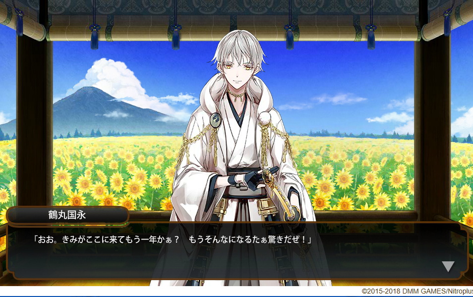 割と最近に来たばっかりの千代金丸に​「​就任一周年か。ここでの暮らしも慣れたか?」
