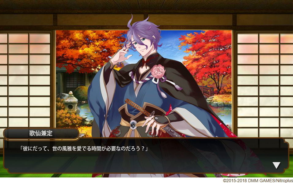 通常、近侍は加州くん(極)なんですが、この子のお見送り台詞は