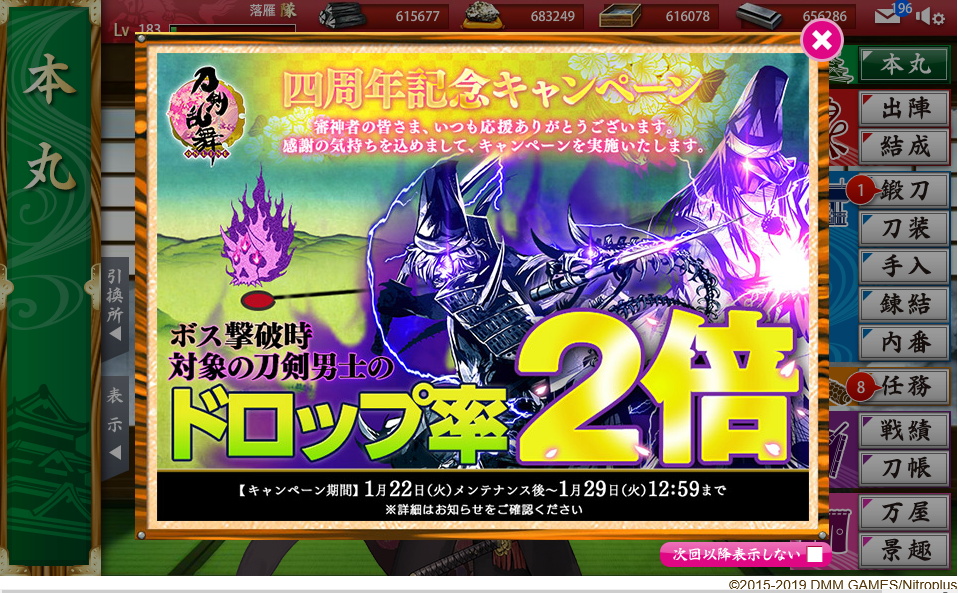 4-4椿寺(三日月狙い)と5-3墨俣(長谷部狙い)で回る感じかな。