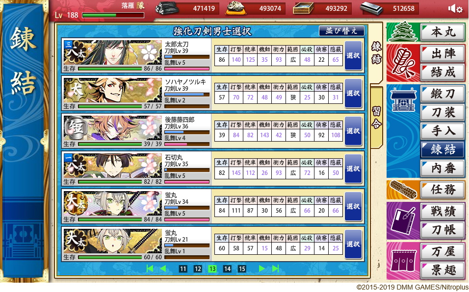 まだ終わってない子もいるけど、レアの子を溶かせなくて刀剣部屋が狭い~。