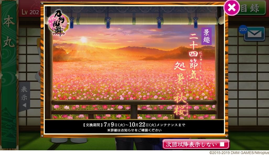 7/9から始まった新景趣の二十四節気 処暑・秋桜。