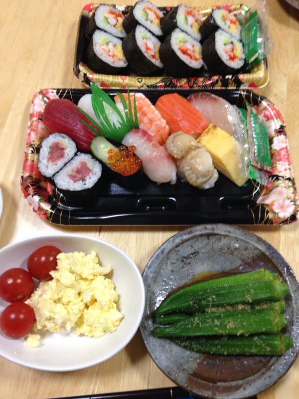 オバマさんが来日し 今夜の会食はお寿司 ……と 聞いたんで 手抜きの理由 出来上がり (笑) 貴賓は高級寿司屋 私はデパ地下 今日は気持ち良い陽気だった(^_^)