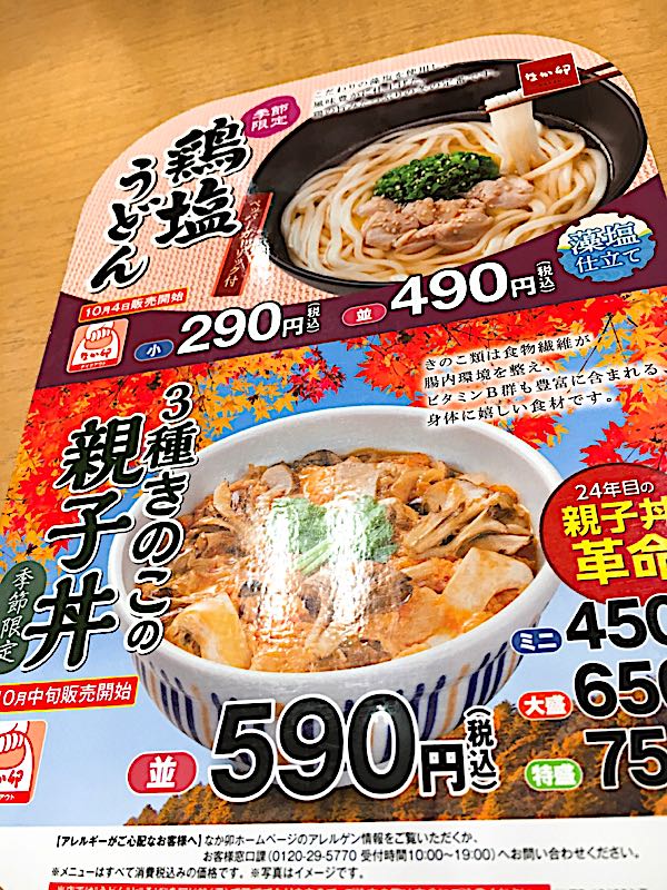 10月29日(☀️😀)元気な月曜日=papa出勤 朝食;コーヒー・トマトジュース・オニオンスープ ストレッチ→おツマミ1品作成→会社→整骨院→ lunch→区役所→帰宅→通院 一応都会でありながら 私の区役所は交通の便悪し 中区 千種区 地下鉄上に移転してくれればいいのにな… 整骨院付近から区役所へ 唯一 1時間に1本のバスあり それに乗る為に lunch場を考えて仕事終了 「お昼は爽やかな陽気でしょう」と朝番で言っていたが 私は寒い 寒いからの (なか卯)にしてみた 親子丼革命らしい(笑) 券売機でダイレクト指名すると 並盛しか表示されない ……う そうか それなら 丼物ジャンルから入ってやるわ 入った すぐミニに辿り着く ¥450(少しお高め?) 普通のご飯茶碗サイズ かきこみ1分で終わるサイズ ……いけない……ゆっくり食べてみた ひとり3種類のキノコ当てクイズをしてみた シイタケ マイタケ …? まったけって事にしてみた 40分 余ってしまった 時間配分が上手く行かない時 私は 結構ストレスになる なか卯で時間を潰せず 隣のガストで コーヒー(ドリンクバー)ながら更新 単品ドリンクバー ¥431(1杯では損な金額) ここでブログ更新 書き終わる ドリンク1杯 今日のlunchは 高かった(笑)