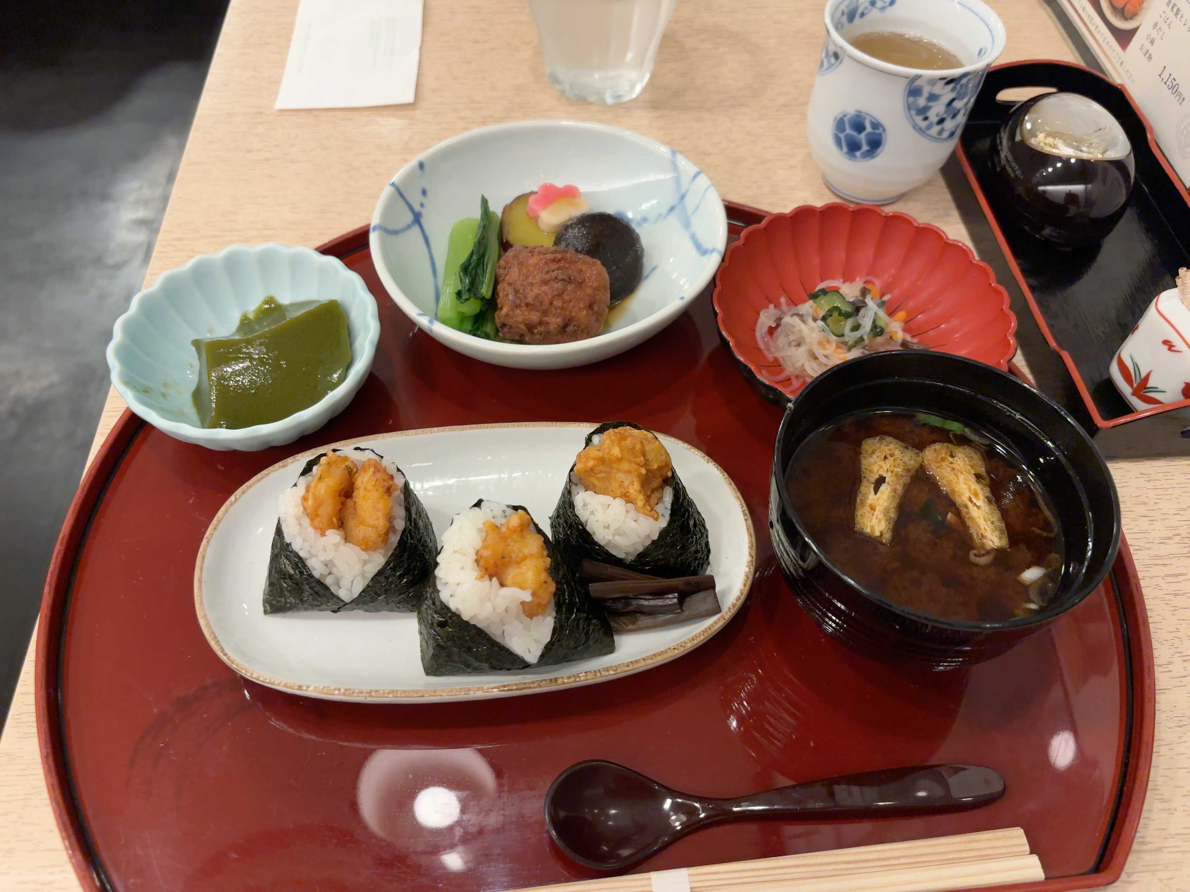 9月2日(☀️)午前6時半起床 今日も猛暑ですが 暦の上か残暑と言うらしいです残暑 似合わない(爆)昨日 早め出勤lunch さすが食欲減退なるも 食べて元気保持必須地雷屋のミニ天むす定食にしました950円今日も早め出勤 早食い必須 lunchは決めてますꉂ🤣w𐤔