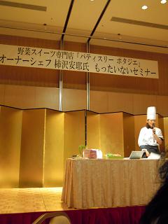 今日はパティスリーポタジエの柿沢安耶さんのもったいないセミナーに行ってきました。 テレビでお店のことを見てから、ずっと気になっていた方が、こんな田舎で講演会してくれるなんて~って楽しみにしていたのです♪ ポタジエの野菜スイーツのお話、現在行ってる活動について楽しくお話を伺うことができました。 地元の野菜を使ってのロールケーキ、すごくおいしかった!! スポンジに芋の葉のパウダー、中にもお芋がたっぷり。 紫芋も入って色がきれい。 レモンのゼリー入りで、甘さの中にもさわやかさが。 とっても楽しくていい時間でした。野菜スイーツ、色々作ってみたくなっちゃった。