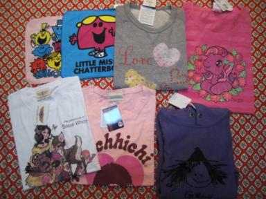 在庫モリモリあったので思わず沢山買っちゃいました グラグラ すぐ着させるのでピンク 5 来年用に6 ピンク・コットンキャンディ・パープル腕に沢山抱えていたので買ってからドーナツが被ってることに気付いたどっちかは手放すかな・・・ お次はvanavana←アフィリは大人用です ターコイズブルー・ブラック・グリーン今期唯一プロパー買いしたのはだけだったんだけどネコちゃんが娘の心をがっちりとらえたのでチュニックも♪く~く~チュニックは娘サイズが1枚だけ残っていたのでお値段的にも迷わずゲット フード付きばっかりだったのでTRもと思ったけどコレっていうのがあまり残っておらずパンダちゃんにしてみましたバクプリ、赤ちゃんぽいけど多分娘は気付かない(爆) 思わず暴走してしまいGTHの予算なくなったよとほほ 他にも沢山ありました~