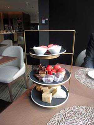 4月27日午後2半頃私達は、再び35F「クラブラウンジ」の「アフタヌーンティータイム」(14:00~16:00)で寛ぎます。アフタヌーンティーセット上 段中 段下 段全てを平らげると、お腹一杯になります。●カフェドリンクフリー立派なメニュー冊子カモミールティーハーブティーアフタヌーンティーで憩う私35Fを占めるクラブラウンジコーナー毎に違った雰囲気を楽しめる。時間の経過と共に、ティータイムを楽しむ人種も世代も違う世界各国の人達が見られます。眼下のビル工事現場クレーンで吊り上げた資材が整然と並べられている。クレーンの正確な動きを眺めているだけでも飽きません。見事な働きぶりに感心致します。