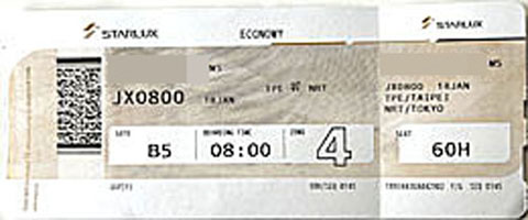 1月18日(木)5:30 ホテル出発 6:00 桃園国際空港着朝食はランチパック、空港内で食べることになる。搭乗チケットSTARLUX AIRLINESJX 800 便台北発 8:308:00 搭乗開始見送って下さった現地ガイドの林さんとのお別れが、少々辛くなる。トランクを預けて搭乗ゲートに向かう。機内は満席のため、離れ離れの通路側の席となる。飛行現在地表示機内サービスランチメニュー飲み物ラックシーフードメニューを選ぶ12:30 成田国際空港着スムーズに税関を通過する。トランクから冬用コート類を出し防寒対策を整える。14時台の横須賀線に乗車し、途中駅で友人と別かれる。17時台に無事帰宅する。*=*=*=*=*=*=*=*=*旅行中大活躍の大型トランクタグがあちこちに付けられている。お土産品最高級プーアル茶十分にて購入お土産品老 酒クラブツーリズムの「台湾旅行5日間」は、盛り沢山の内容で日々美味しい中華料理を味わえ、料金も大変お得だったと思います。皆さんに後れを取らぬよう必死で付いていきましたが、今は体験できたことに充実感を感じております。現地ガイドの林さんやグループの方々にも感謝の気持ちで一杯でございます。帰国して後の「左手首複雑骨折」というハプニングから現在に至るまで、「旅行中でなくて本当に良かった!」と、不幸中の幸いに胸をなでおろした次第でございます。今は、次の「海外旅行」を目標に気持ちを鼓舞して、左手の回復に励みたいと思っております。