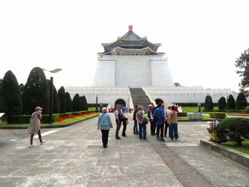 1月17日(水)◇中正紀念堂13:30 ~ 14:30「中正」とは蒋介石の本名のことで、中華民国初代総統だった蒋介石への哀悼の意を込めて建てられたものとのこと。中正紀念堂へ向かう堂内通路天井の装飾和の雰囲気を感じる天井。中正紀念堂敷地内模型エレベーターにて4階へ移動する。70mもの高さの紀念堂内にある蒋介石の座像◇衛兵交代式9:00~17:00迄の毎正時おこなわれる。(2024年7月14日をもって終了となる。)14:00~ 衛兵交代式見学エリート中のエリートであろう容姿端麗な衛兵たちの、一糸乱れぬきびきびとした動きに見惚れる。(約10分間)蒋介石が見つめる庭園方向を眺める。オレンジ色の左右の建物は、左手・オペラハウス、右手コンサートホール記念撮影庭園を背景にして中正紀念堂を背景にしてこうして旅程の全ての観光を終え、15:00 ホテルに帰着する。その後は自由行動となる。