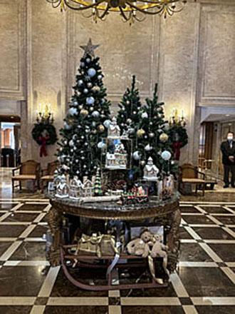 以前「一休.comレストラン」より、2か月前の9月30日に「ル・ノルマンディ/ホテルニューグランド」のランチ予約をいれてありました。その折ホテルのレストラン予約係の女性の方から心温まるお祝いのお電話を頂きました。唯、この時はこちらの都合でキャンセルしていた事情がありました。申し訳なく思い気になっていたこともあり再度予約を入れ、この日に利用当日を迎えました。そのご報告を致しましょう!11月30日(土)午前11時50分ホテルに到着する。ホテルニューグランドロビーの装飾エレベーターで5Fへと向かう。コート類をクロークに預けた後、もっとも奥まった海側の中央席に案内される。【アニバーサリーランチプラン】シェフお任せフルコース+シャンパン1杯+ミニホールケーキテーブルセッティングノンアルコールシャンパン【ホテルオリジナルラベルシャンパン】マンサール シャンパン プルミエクリュ一回りサイズの大きいネーム入り特製プレイト前菜1前菜2パ ン左手の不自由な私のためにカットをして下さる。お箸も添えて下さる。茸のスープ魚料理肉料理私用に、お肉をカットして下さる。細やかな心遣いに感謝致しました。 つづく