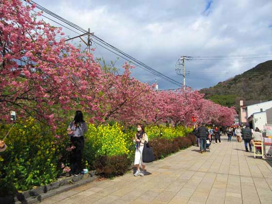 3月7日午前11時少し前「青山やまと」を出発し、一路河津へと車を走らせる。途中たいした渋滞もなく12:10に、「河津さくら祭り」会場へ到着する。警備員の指示に従って右折すると、「イオンマックスバリュエクスプレス河津店」の無料駐車場に運良く駐車できる。「河津さくら祭り」伊豆急行線路脇の河津桜この日唯一のツーショット記念写真満開の河津桜河津川沿いの河津桜並木道列車と河津桜(友人撮影)河津桜を背景にして河津桜並木のトンネル大勢の人々が行き交う。人波が途切れた瞬間を利用しての記念撮影時間を見計らい元来た道を戻る。舘橋付近の河津桜並木道川沿いの桜並木に沿って屋台も並び、昔懐かしい日本ならではの長閑なお祭り風景を楽しむ。遅い昼食は、屋台に並んで買い求めた、大阪焼き(300円、写真は1/2食べてしまった後のもの)お得感があり、下に目玉焼き丸々1個があり、食べ応えのあるもの。全部食べ終えると、お腹一杯になる。屋台で購入したお水 150円車の中で昼食を終え、スーパーでお買い物をした後、13:30 帰路に着く。帰路は順調なドライブとなる。国道135号線 → 熱海ビーチライン → 真鶴道路 → 湘南バイパス →134号線 →E84 → 新湘南バイバス → 藤沢バイパス → 国道1号線 → わが家視界が暗くなる前の17:55無事帰宅する。*=*=*=*=*=*=*=*=*今回の「伊東温泉一泊旅行」の行きは、2ヵ所の渋滞に巻き込まれてしまい、進めば進むほどナビの到着予定時間は遅くなるばかり、いつ到着できるのかハラハラした道中でした。予定の倍以上かかってやっとたどり着いたホテル到着後はラッキーなことが重なり、居心地の良いホテル滞在を体験することができました。2人とも「青山やまと」がお気に入りのホテルとなり、再訪したい宿泊施設の一つとなりました。7日は好天に恵まれ、河津まで足を延ばすことができました。大勢の人々がお花見を楽しむ風景は、幸せな日本の象徴のように思えました。「終わり良ければ総て良し!」の心境で、2日間を存分に堪能することができた思い出深い旅となりました。2日間長時間の運転を担当してくれた友人に、心からの感謝を致しました!