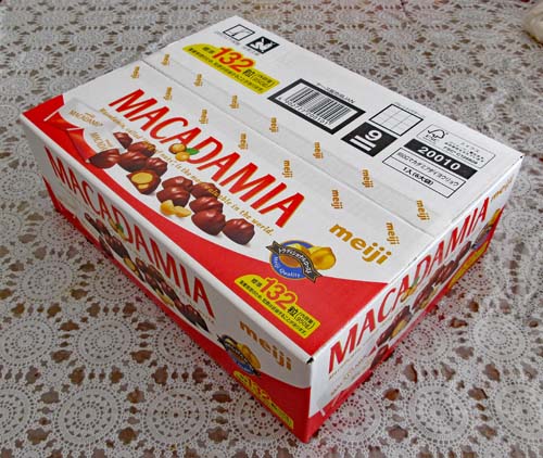 *マカダミアナッツチョコmeijiMACADAMIA(22個入り6袋入り)マカダミアナッツチョコ 大袋 (22個入り)マカダミアナッツとカカオの組み合わせマカダミアナッツチョコマカダミアナッツに含まれる栄養成分炭水化物、タンパク質、脂質(不飽和脂肪酸)、食物繊維、ビタミンB1、ビタミンB2、ビタミンB6、鉄、マグネシウム、ビタミンEマカダミアナッツの効果・効能・美肌・美容効果・便秘解消・癌予防・脳卒中・痴呆予防食べ過ぎると、・太る ← 脂質が多く含まれている。・肌荒れ ← 油分が多く含まれている。1日の摂取量は13粒ほどに留ておくこととのこと。「長寿の方々は、チョコレイトを食べている。」と、目にしたことがありましたが、残念ながら、私はチョコレイトを食べると頭痛が起こってしまうタイプですので、毎日2個食べることにしております。
