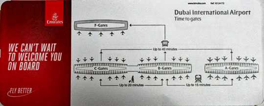 〈日程2日目〉2025年5月9日(金)ドバイ着 4:50ドバイ発→ローマへ9:10 EK09713:25 ローマ着飛行時間:約6時間15分【ローマ泊】ドバイ空港AゲートからBゲートまで電車で移動する。航空チケットの裏面の説明書き空港内を電車で移動中BゲートからCゲート迄更に徒歩20分、広い広い構内に驚くばかり。乗り換え便の出発まで約4時間の間がある。再集合時間の説明を聴く。道中は長いので、私達は余り動かずに体力の温存を心掛ける。ベンチに腰掛け周囲を観察する。トイレの表示は世界共通といえる。移動のサービス?有料?右にSTARBUCKS店舗あり。地下の売店記念撮影