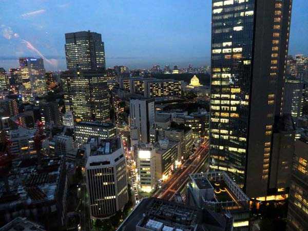 ライトアップされた国会議事堂がひときわ目立ちます。