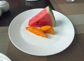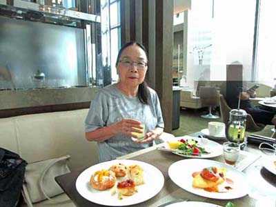 朝食はバイキング形式。ほぼ満席の賑わいに驚く。