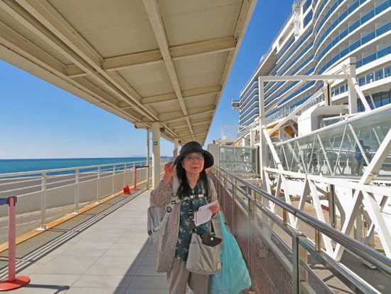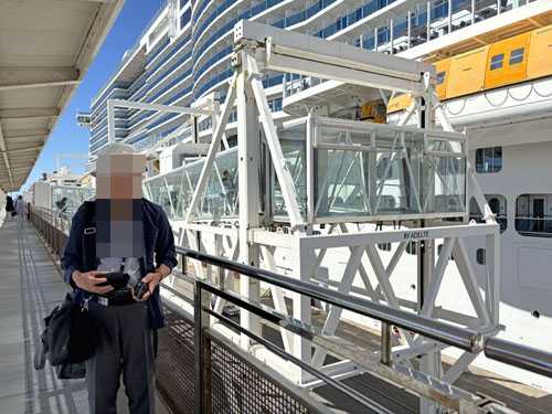 手荷物検査を通過し、グループの最後に乗船する。