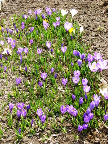 クロッカスが咲き始めました。そして、水仙がつぼみを大きくしています。もう少しで咲きそうです。