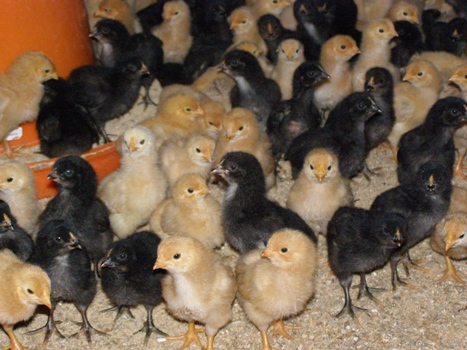 4/8に孵化、9日に引っ越してきた雛たち、円形の飼育場にまばらだったのが、今はびっしりになっています。羽のほうも大きくなってきました。