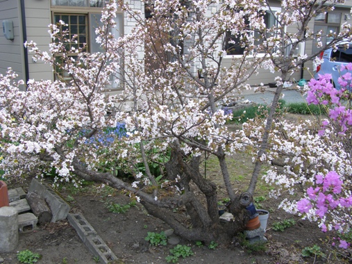 昨日の撮影時から24時間の積算温度は200度Cを超えていました。(アメダスのデーター便利ですね。) 夜中に満開 ? ないない。陽が昇って一気に満開になったのでしょう。