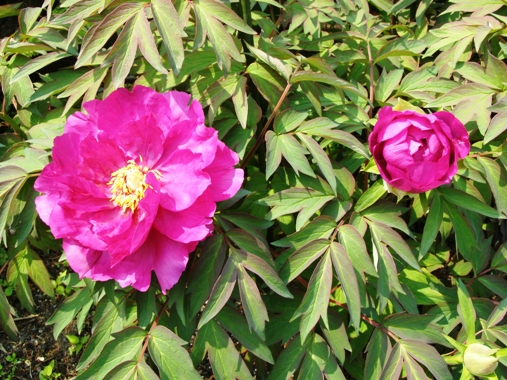 小さな花をたくさんつけるつつじが集団美なら、この牡丹は一輪で他を圧倒するような貫禄を示しています。これからの蕾があと12個もついています。