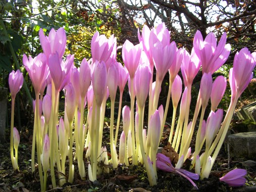 我が家の庭も、秋風とともに咲き誇っていた花たちが冬篭りの支度を始めています。球根ベゴニアは、名残りの花を付けていますが、あとわずかな期間でしょう。それだけにコルチカムの花は目立っています。