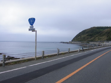 トンネルを出て約55kmほど海沿いの道を北上すると見えてきました。